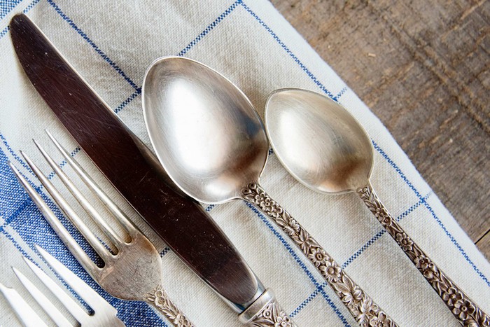 Смешайте крахмал и воду до состояния густой пасты. Влажной тканью нанесите на серебряную поверхность. Дайте подсохнуть, а затем аккуратно потрите марлей или другим мягким материалом до возвращения желанного блеска.