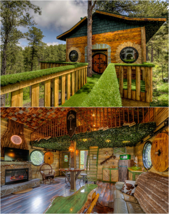Атмосферный отель в американском городе Блэк-Хиллс, интерьер которого был создан под впечатлением от знаменитой трилогии «Властелин колец». Деревянная обшивка, обилие живых растений, окна и двери круглой формы и множество других тематических элементов, которые порадуют всех поклонников фантастического романа Толкина.