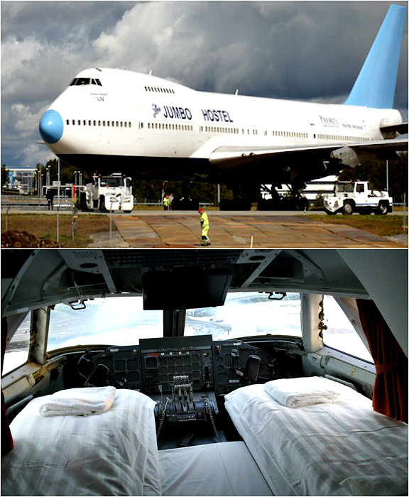 Двадцать девять комнат оборудованных в салоне настоящего Боинга 747–212B, расположенного у въезда в стокгольмский аэропорт Арланда. Интерьер стандартных номеров сдержан и демократичен, удобства в коридоре. Самый дорогой и просторный номер расположен в кабине пилота, откуда открывается роскошный панорамный вид на аэропорт.