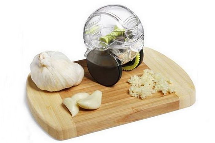 Измельчение чеснока общепризнанно считается одной из самых раздражающих и утомительных кулинарных задач. Следующий чесночный измельчитель делает измельчение чеснока быстрой и легкой задачей. Просто нужно поместить чеснок внутрь пластикового шара в верхней части гаджета и энергично покатать шар по любой поверхности.