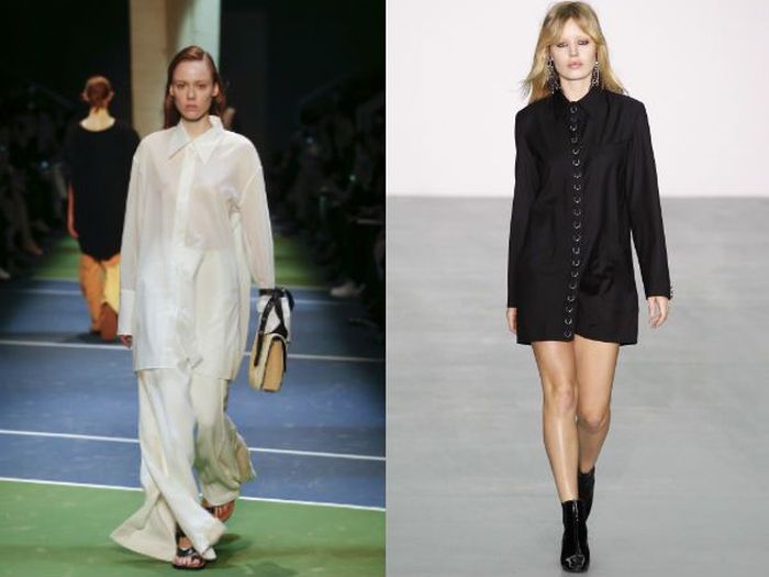 Многие девушки неравнодушны к мужским рубашкам и очень любят носить их в домашних условиях. Этот факт взяли на вооружение модные дизайнеры и вынесли его в разряд трендов. Они сделали платья в виде удлинённых рубашек, такие предметы гардероба смотрятся очень стильно и подойдут даже деловым леди.