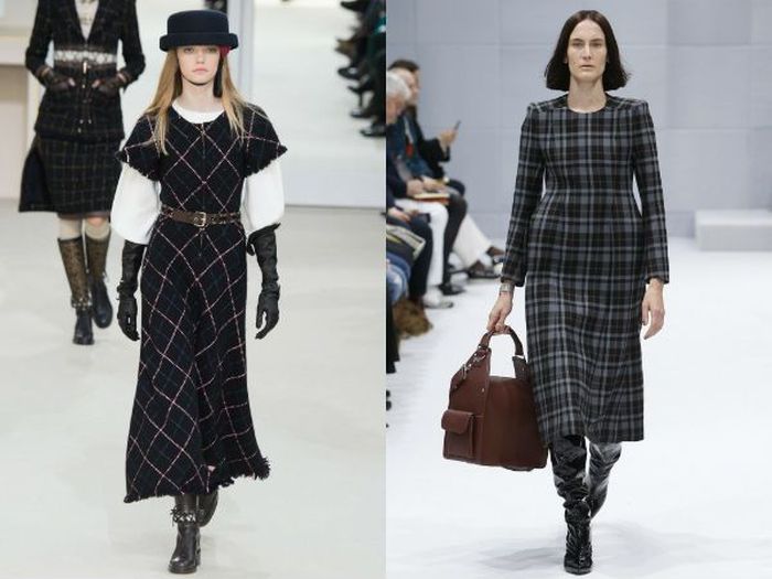 Клеточный орнамент можно смело отнести к классике, так как он уже долгое время не выходит из моды. Если он раньше встречался на пальто и брюках, то теперь постепенно перешёл на платья.