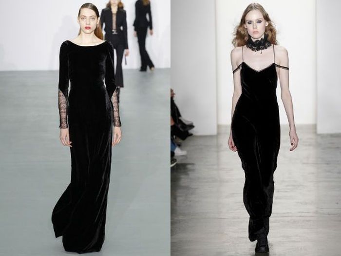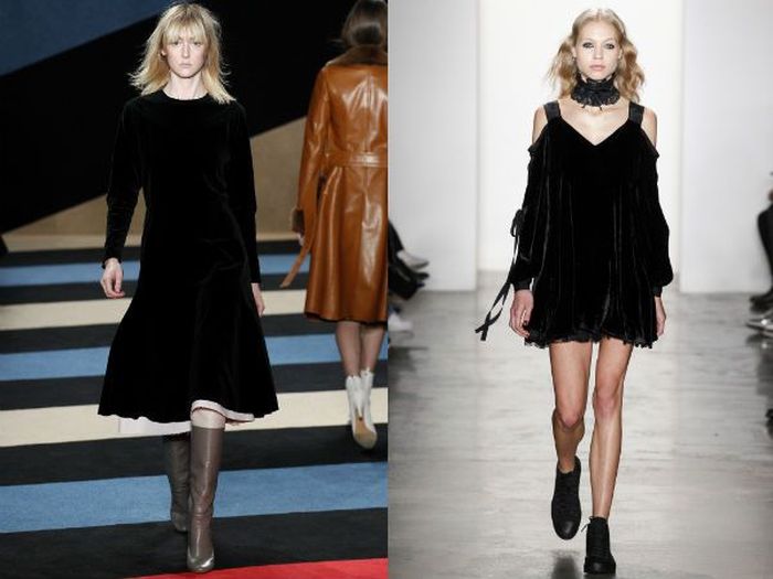 Существует клеше, что бархат старит и его носят только женщины преклонного возраста. Модельеры решили опровергнуть это утверждение и выпустили много красивых моделей из бархата. Он смотрится очень стильно, делает образ загадочным и интересным.