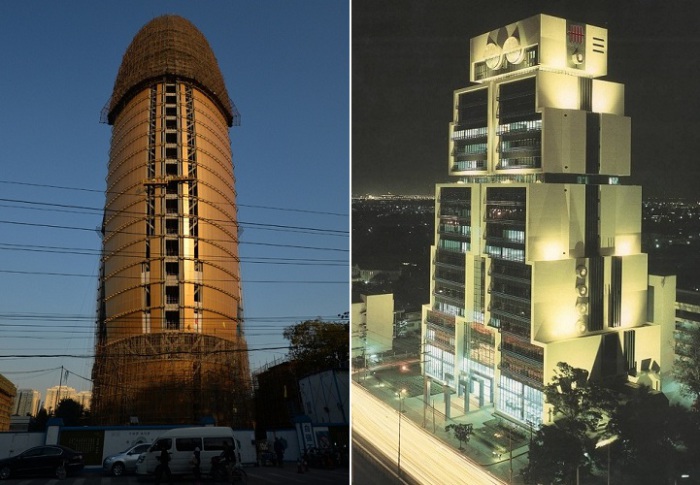 Штаб-квартира коммунистической газеты Жэньминь Жибао в Пекине расположилась в здании, форма которого, мягко говоря, вызывает недоумение. Только ленивый не усмехнулся в социальных сетях по поводу фаллических очертаний башни.3. Здание-«Робот»