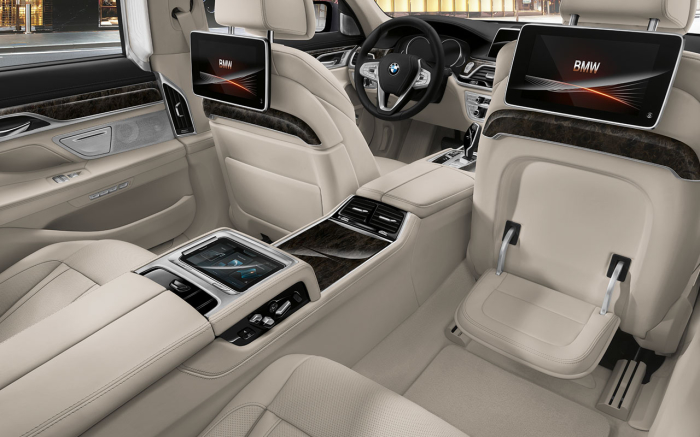 Новый флагман BMW, седан 7-й серии впечатляет не только снаружи со всех сторон, но, особенно внутри. Здесь новый 10,2-дюймовый сенсорный дисплей, улучшенный интерфейс iDrive, способный распознавать жесты, беспроводная зарядка телефона, массажные кресла с подогревом, обогреваемые подлокотники, обивка из алькантары, деревянные вставки из каштана и завораживающие решетки динамиков звуковой системы Bowers & Wilkins.