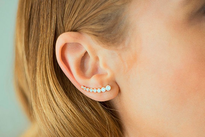 Ещё один вариант серёжек, который будет выгодно смотреться в компании с новогодним нарядом. Пускай серьги полоской небольших стразов выглядят скромнее, чем их коктейльные сестры, зато изящества им не отнимать.