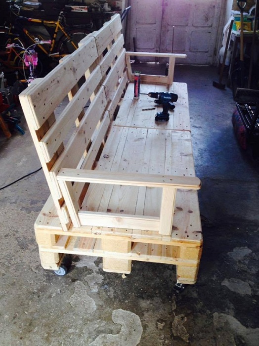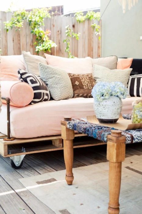 Оригинальное решение создать диванчик на поддоне еще и на колесах, что может быть интересней и прекрасней.
