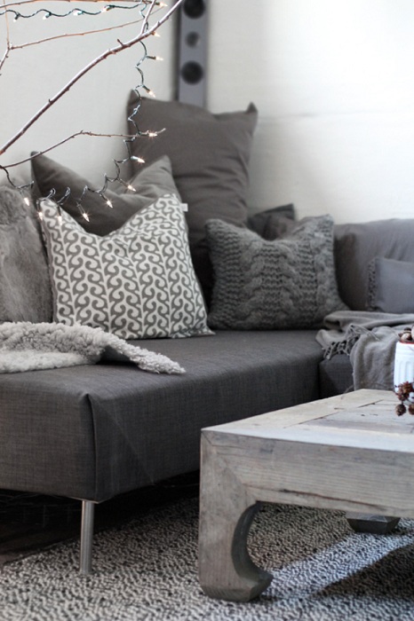 Прекрасное оформление диванчика с интересными подушками, что станет просто отличным решением для оформления.