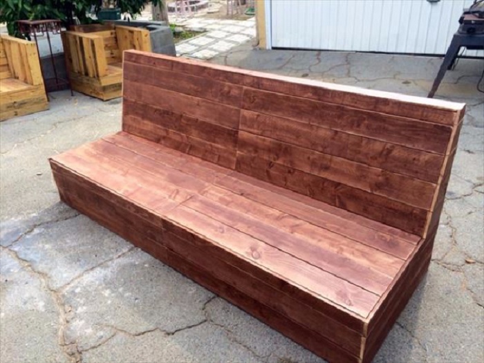 Простое и тактичное решение создать диванчик из поддонов в светло-сером цвете, то что создаст легкую и отличную атмосферу.