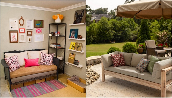 Прекрасным решением в оформлении любой комнаты или же пространства во дворе может стать собственноручно созданная софа или диван. Такой предмет интерьера быстро и на долго создаст оптимальную обстановку и позволит создать еще больший уют.