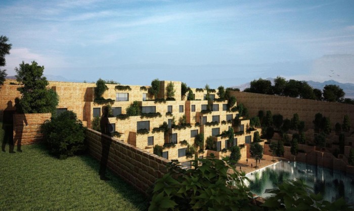 По мнению архитекторов, на естественном склоне можно будет построить шесть ярусов с офисными помещениями. Земляные уступы, стилизованные под ступени, выполнят функции естественных террас.