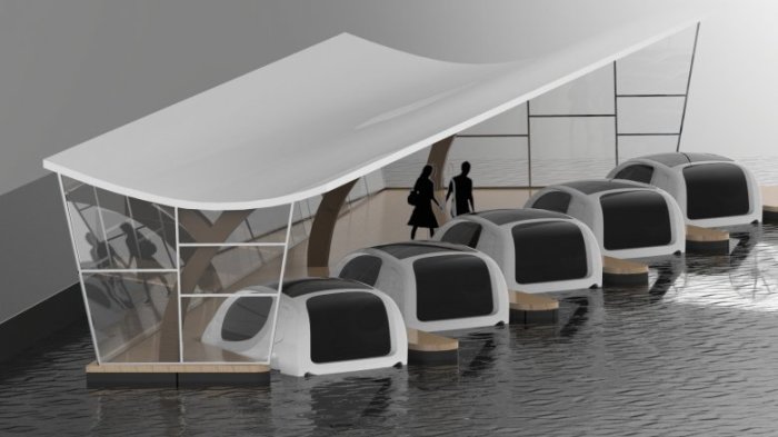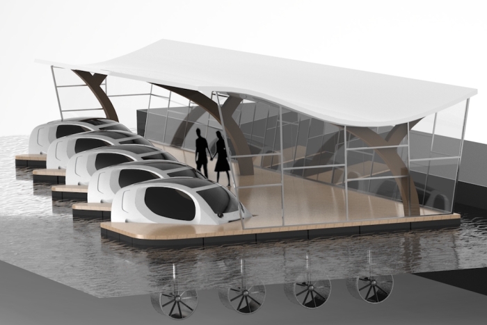 Компания планирует построить пузыреобразный электрокорабль, который будет парить в десятке сантиметров над водой и перевозить людей над рекой. Учредители намерены запустить первые «летающие над водой такси» к лету 2017 года.