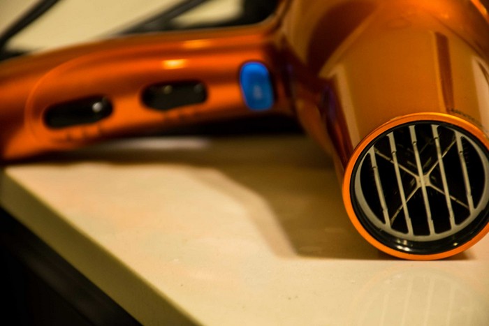 Положите вещь на максимально ровную поверхность, переключите фен на высокий температурный режим и, удерживая его на расстоянии около 10см, тщательно обработайте все складки и неровности одежды. Вот увидите: под воздействием высокой температуры они разгладятся буквально сами собой.