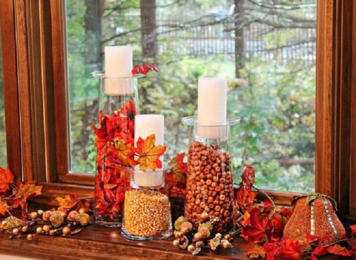 Красивое оформление подоконника, что точно понравится и создаст по-настоящему осеннее настроение и декор.