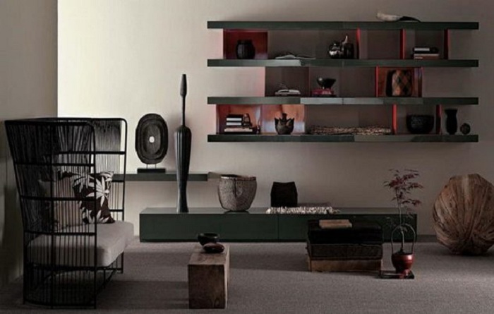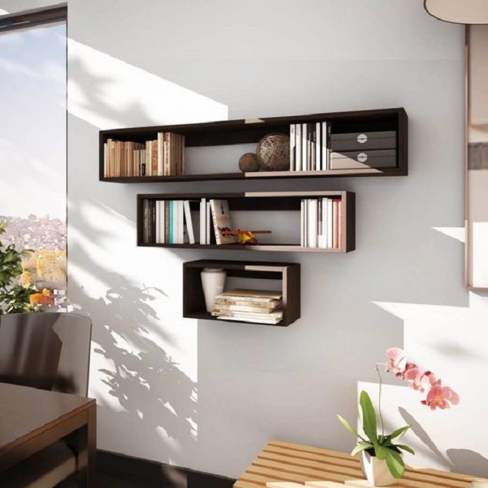 Очень симпатичное решение для создания полки в темных тонах, что преобразит интерьер любой из комнат.