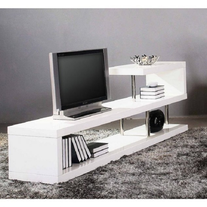Оформление подставки под телевизор в белом цвете, что станет просто отменным решением для преображения любой из комнат.