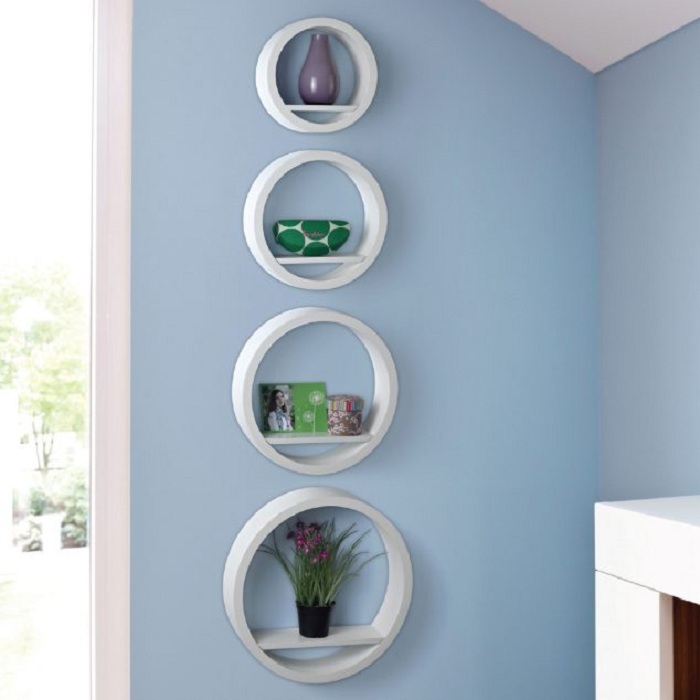 Прекрасные круглые полки отлично подойдут для декорирования стен любой из комнат и создадут просто невероятное настроение.