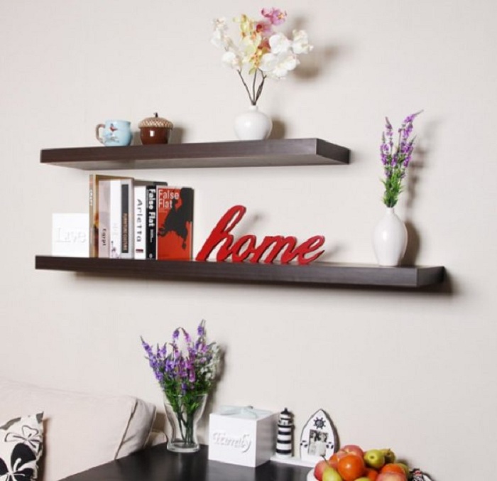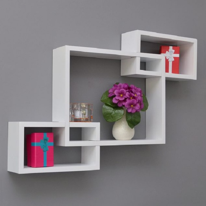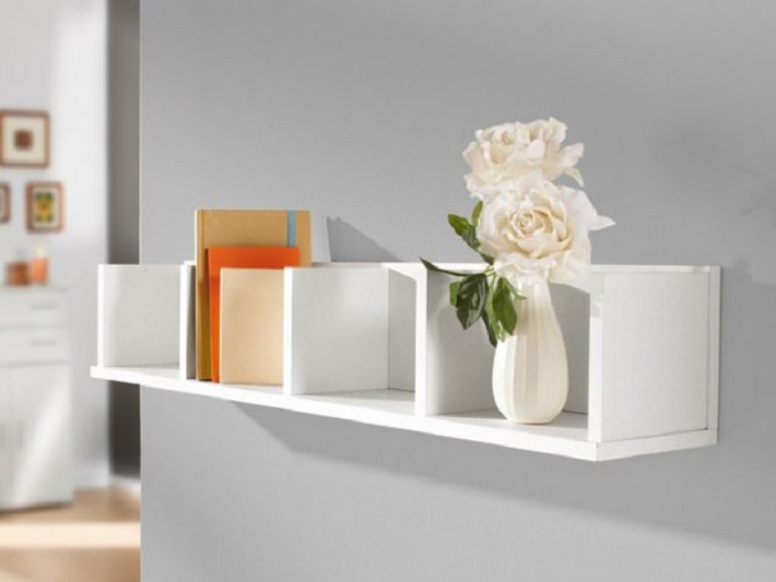 Освежить интерьер любой из комнат возможно благодаря простой светлой полочки, но не стандартной формы.