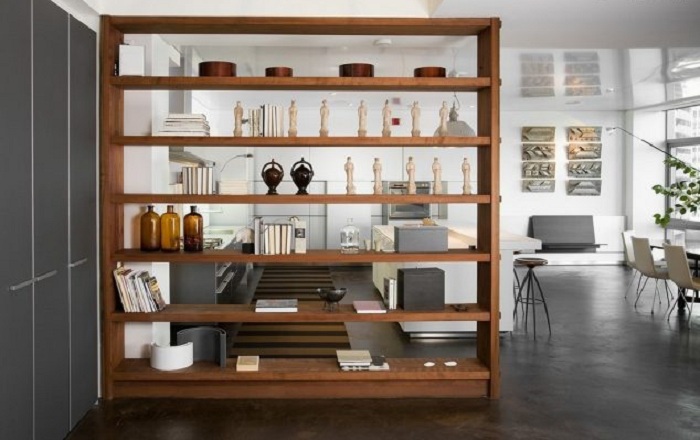 Зонирование пространства благодаря простому решению разместить шкаф, который разделит зрительно комнату на части.