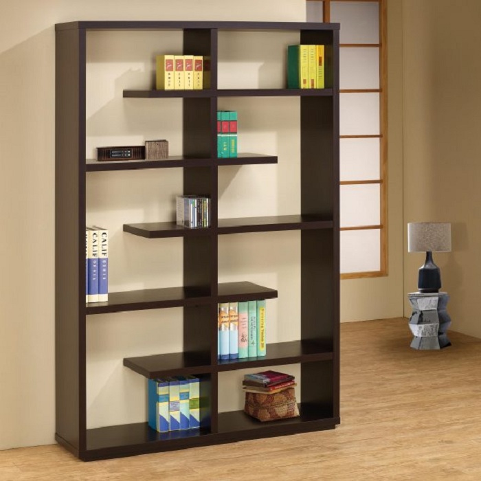 Очень красивый интерьер комнаты создан благодаря просто потрясающим современным полкам, что понравится.