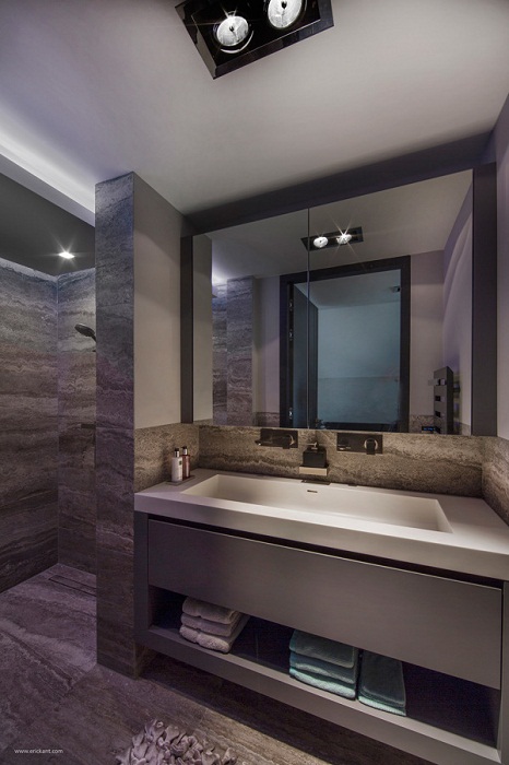 Один из самых прекрасных вариантов оформления ванной комнаты, отличное дизайнерское решение.
