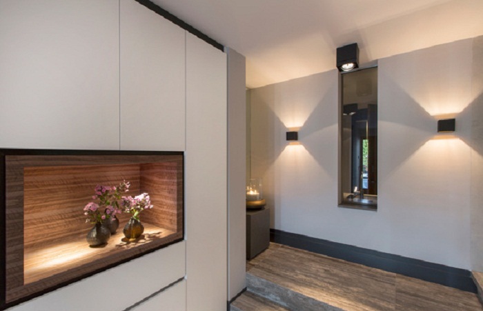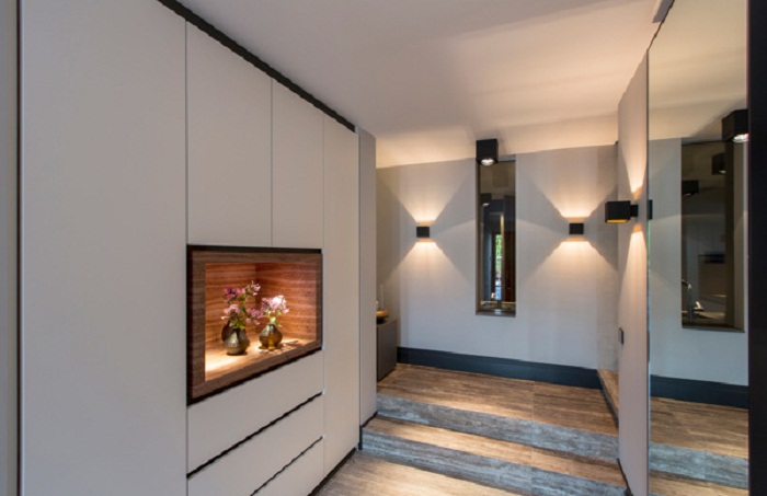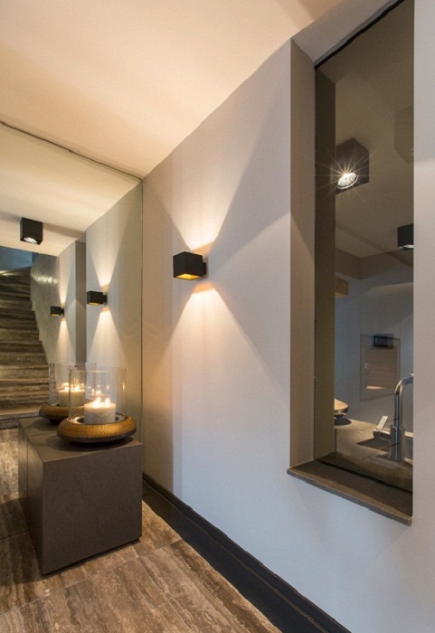 Оптимальное решение декорирования прекрасного коридора при помощи необычного освещения.