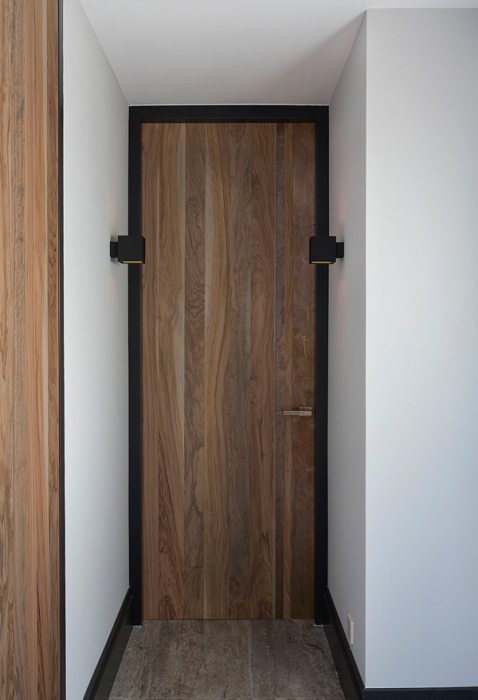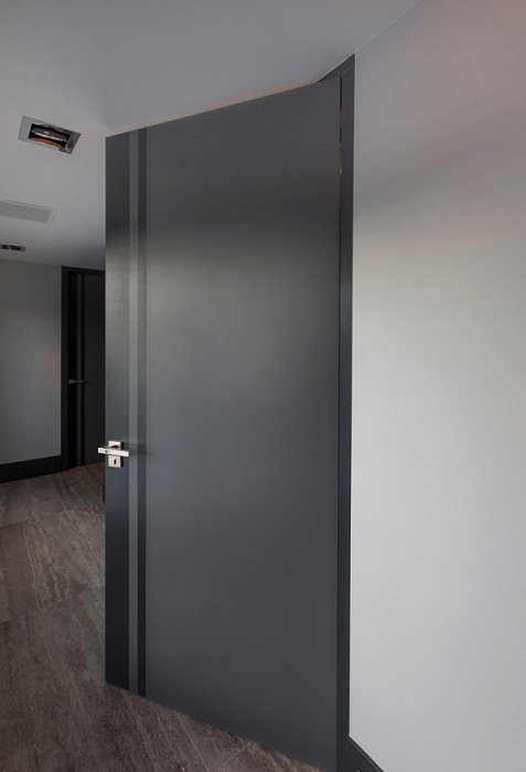 Очень красивое и стильное оформление двери в полупрозрачном мотиве.
