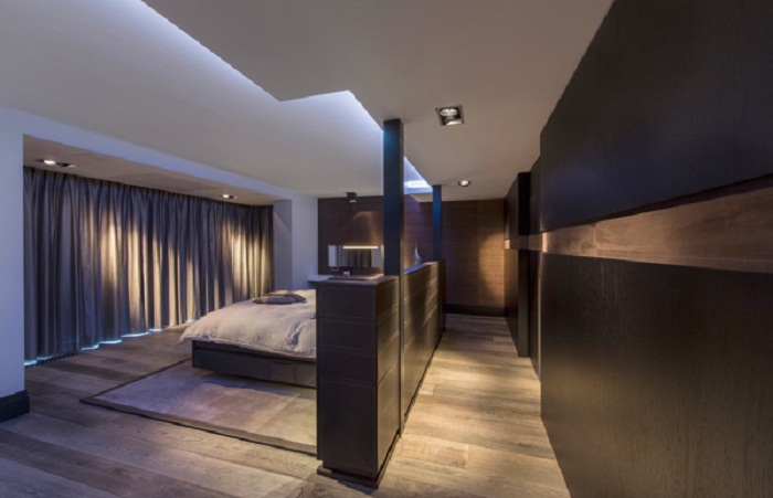 Оптимальное и оригинальное решение для создания отличной перегородки в спальной.