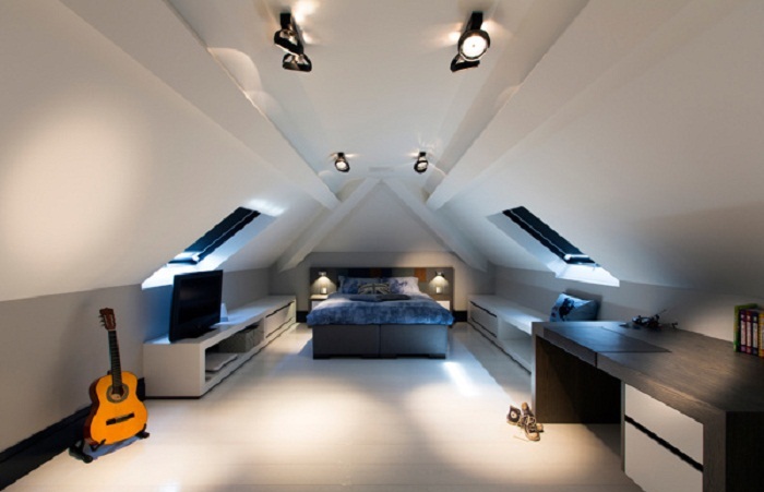 Оптимальное декорирование комнаты с шикарной крышей-мансардой, что может быть лучше.