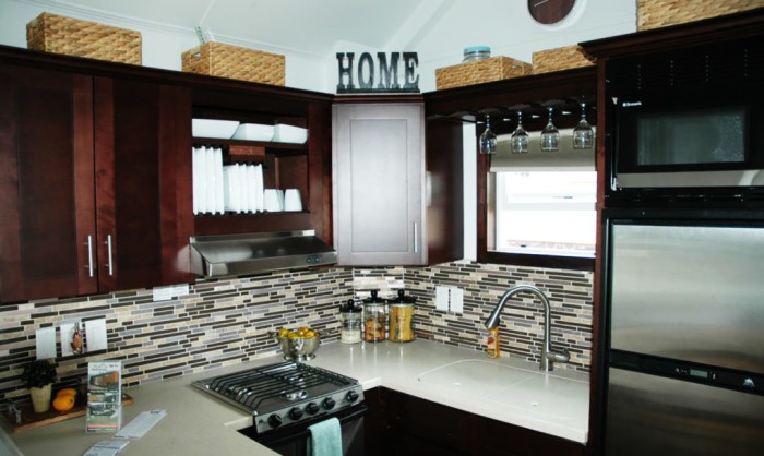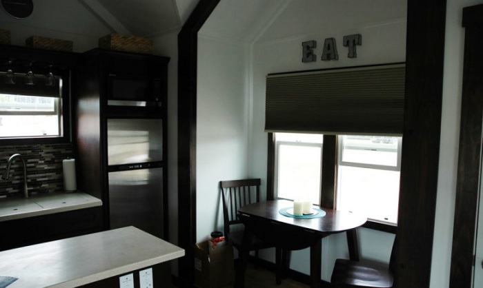 Столовая и кухня в мобильном доме.