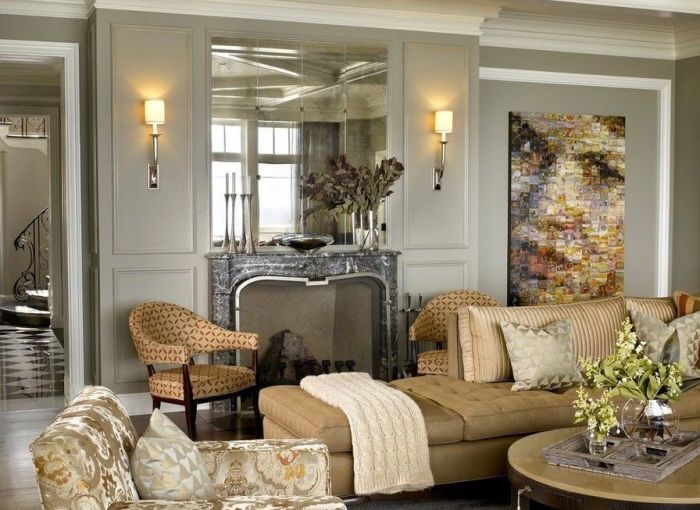 Зеркало визуально умножит красоту в вашей гостиной ровно вдвое.
