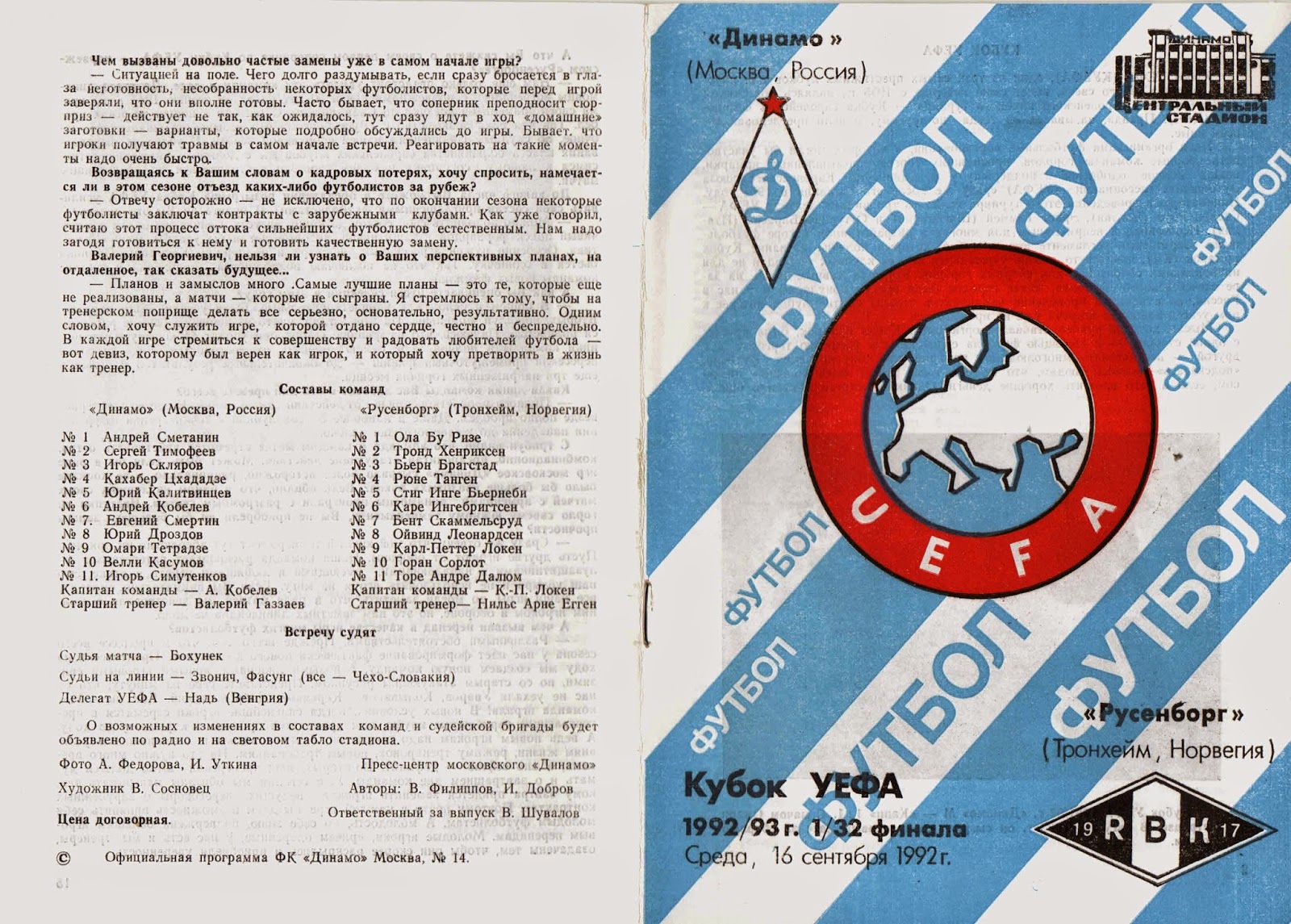 Бело-голубые в еврокубках образца 1992/93 убедили нас в том, что скандинавы нам не соперники — с общим счетом 7:1 Динамо уничтожило Русенборг.